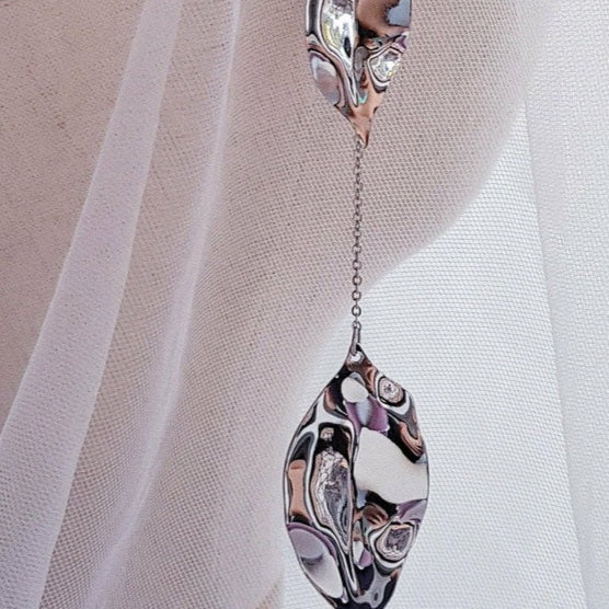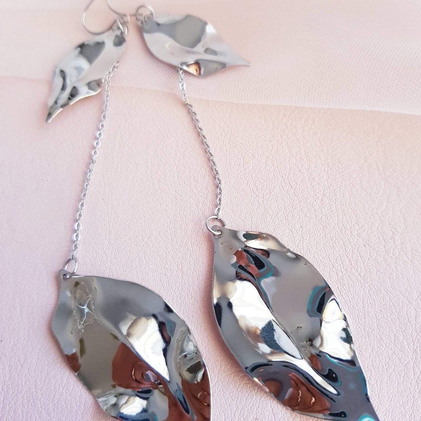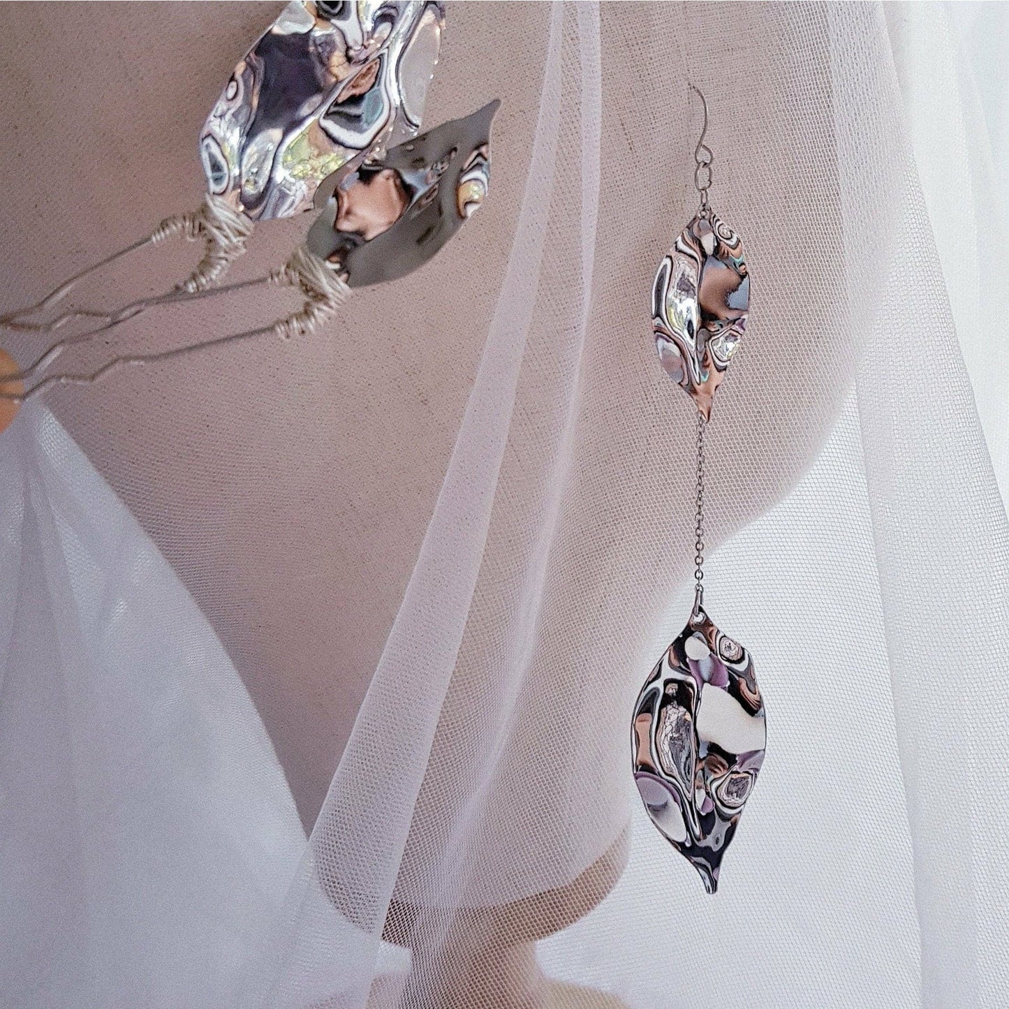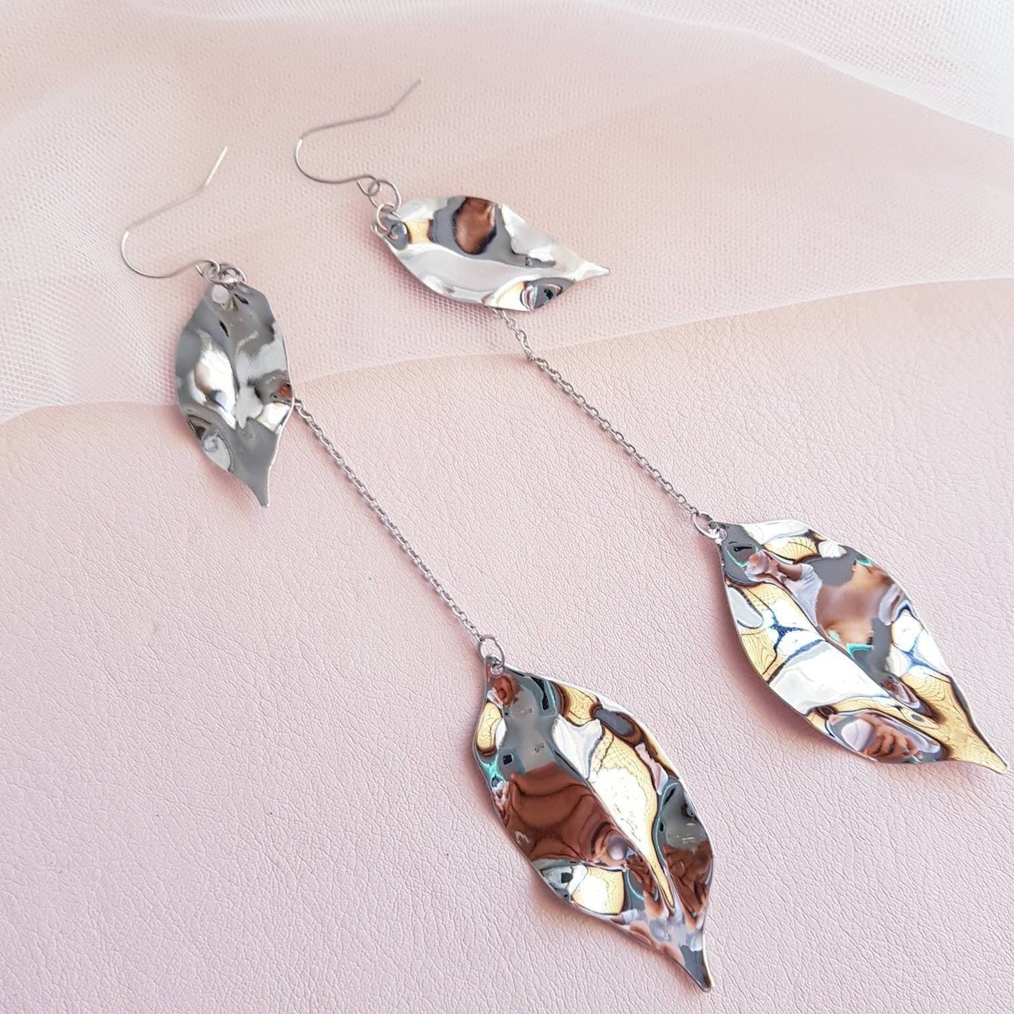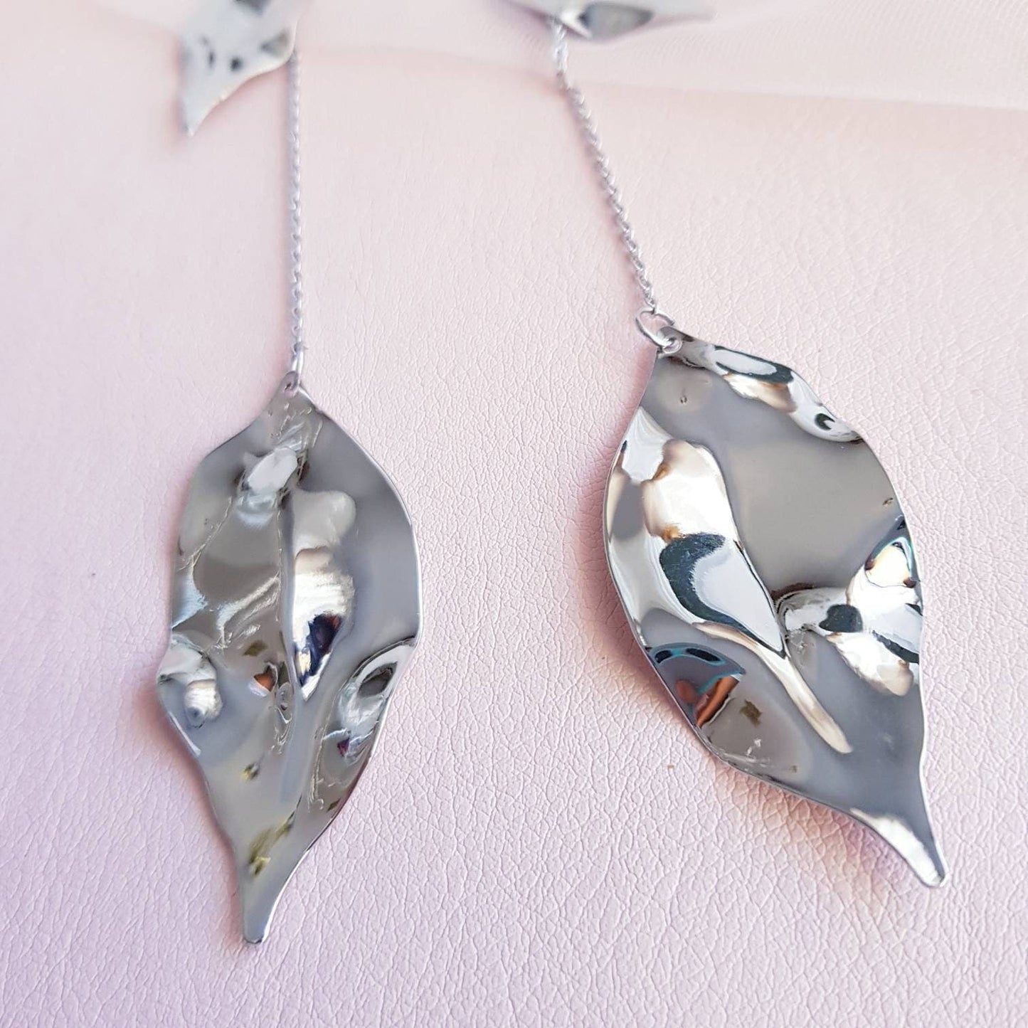 ARGENT FEU Artistic Leaf Earrings in shimmering silver-tone